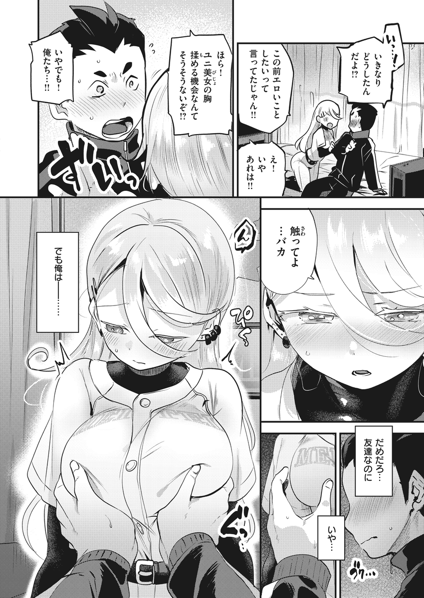 【エロ漫画】恋愛経験が少ないボーイッシュJKが兄弟のような関係の幼馴染にチンコを見せてもらってたらエスカレートしてイチャイチャ初エッチしちゃう♡
